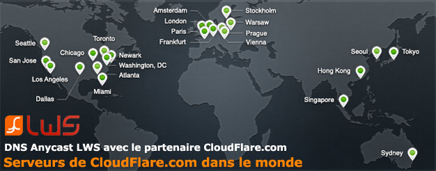 LWS vous propose cette solution GRATUITEMENT, basée sur notre partenariat avec la société de CDN CloudFlare et ses serveurs DNS mondiaux, pour chacun de vos noms de domaine sous la forme d'une simple configuration à activer depuis votre espace client.